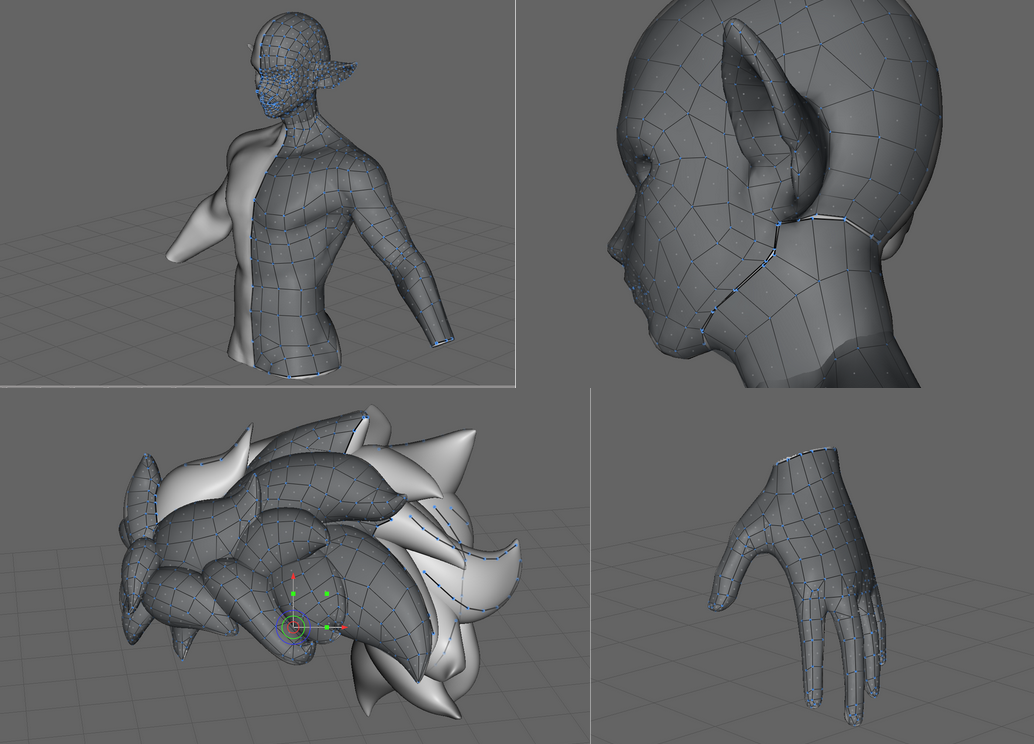 With my workflow of jumping between programs I did most of the retopo side by side with the HP, the only thing that really took a while was the hair/fur so when the UVs had to be done, they could be understood nicely what was each part.