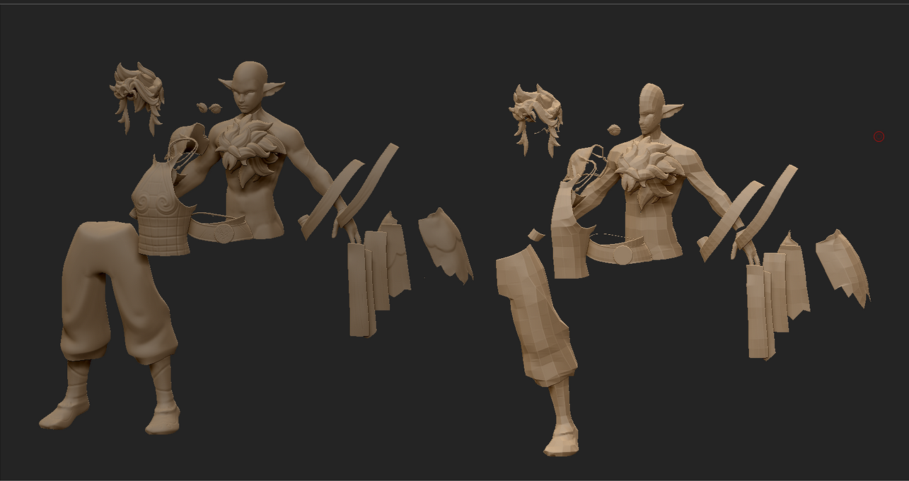 The idea was to adapt it more into a 3d model, whether that be accentuate proportions, check if there’s too much noise in certain areas and iterate how the whole silhouette reads, plus adding more storytelling in the general looks.