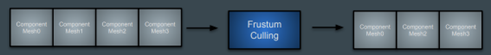 Now that everything is set up, we can start rendering! The camera’s frustum culling determines which meshes need to be drawn each frame, allowing the Batch Manager to call only those Geometry Batches that contain at least one visible mesh. Each mesh component knows which Geometry Batch it belongs to.
